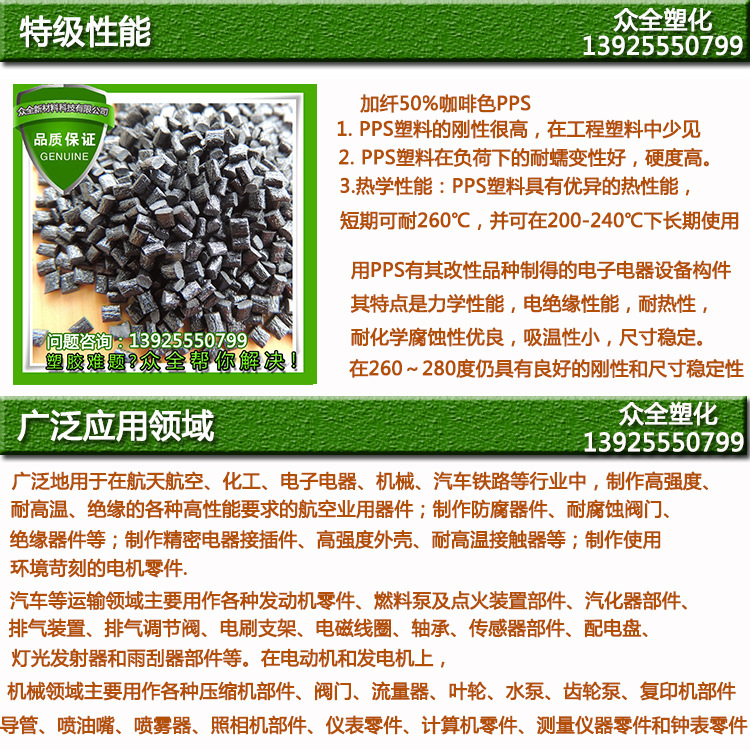 高韧性/高抗冲/耐磨损PPS加纤50%增强级改性PPS塑胶颗粒