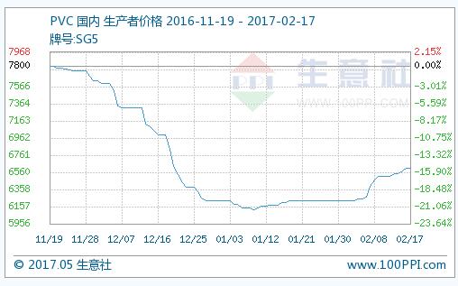 据生意社监测数据显示,本周国内PVC市场行情回暖。以牌号电石法SG5为例,周初价格维持在6542元/吨左右,周末上涨至6610元/吨左右,价格周内上涨1.04%,价格同比大幅上涨36.16%。交投气氛一般,多数贸易商采取让利出货为主。